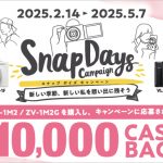 VLOGCAM ZV-1F、VLOGCAM ZV-1 II(ZV-1M2,ZV-1M2G)購入すると、応募者全員に最大5,000円キャッシュバックされる「スナップ デイズ キャンペーン2026スプリング」が開始されています。