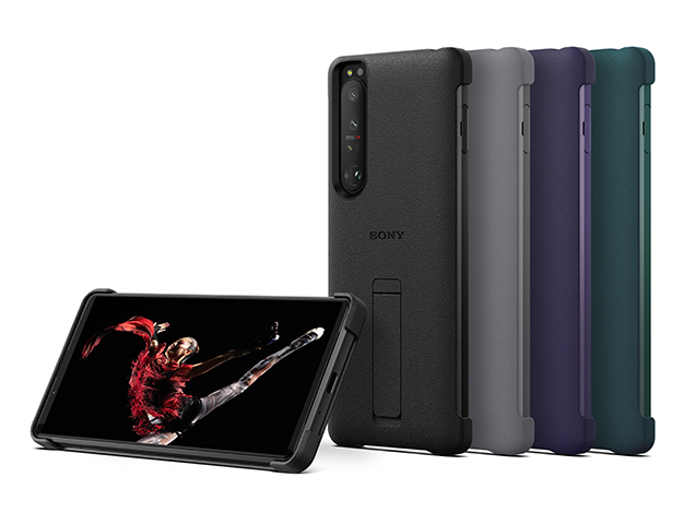 Xperia 1 Ⅲ用専用カバー「XQZ-CBBC」はカラーがブラック、グレー、パープル、グリーンの4色から選択できます。
