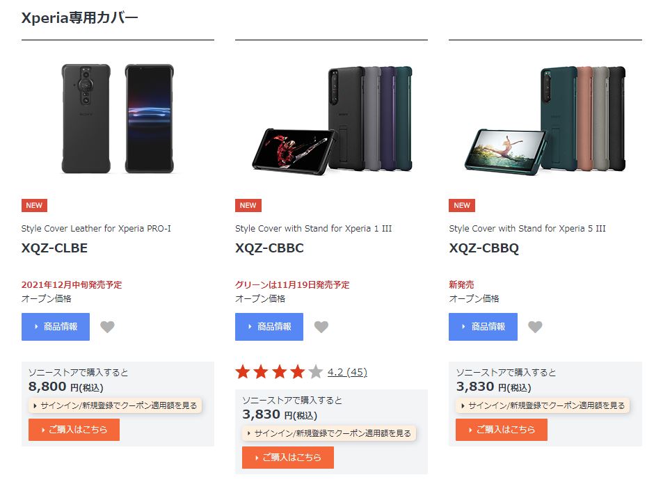 Xperia PRO-I、Xperia 1 III、Xperia 5 III用の専用カバーが発売されています。